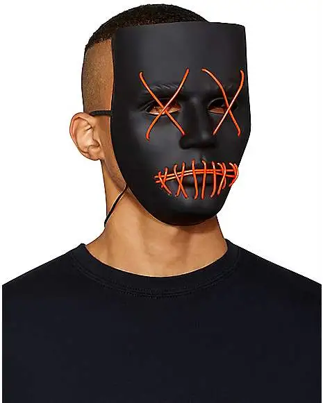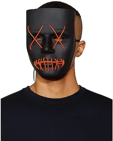 Take on the night in this frightening light-up mask! With glowing orange X’d out eyes and a stitched mouth, this creepy mask is sure to frighten even the most fearless people this Halloween!