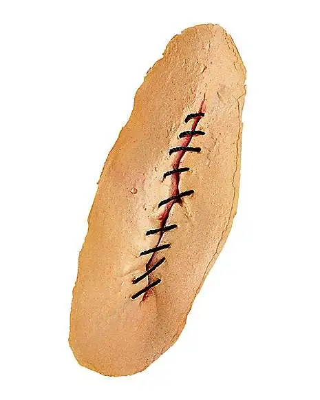 These fake, yet gruesome loose stitches give the impression that you ran out of the emergency room a bit prematurely. This highly realistic, pre-painted facial prosthetic goes on in three easy steps. Perfect whether you are an emergency room patient, a shark attack victim or a psycho killer!