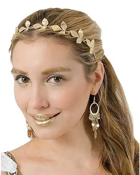 Be a true Grecian Goddess with this Metal Leaf Crown! This golden headband features gold laurels that will rest perfectly on top of your royal head. All you need is some golden jewelry, makeup, and costume to complete the look (all sold separately)!