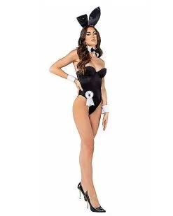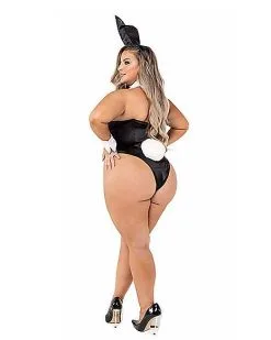 Spirit Halloween Plus Size Playboy Bunny Bodysuit Outfit – Black